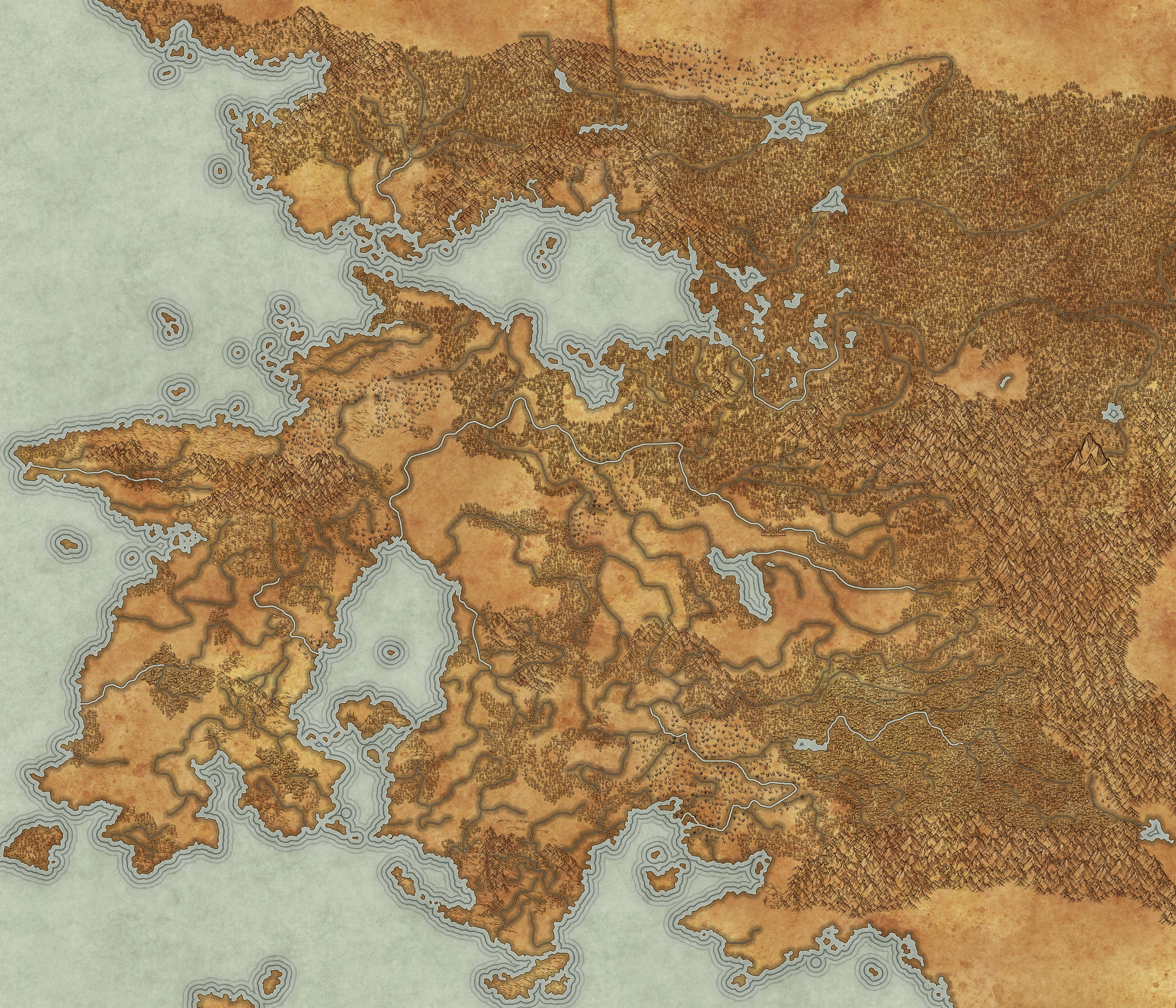 Cannor (meaning Heartland in Old Castanorian) is a large, generally temperate continent. To its west it is bordered by the Uelos' Lament Ocean and its south borders the warm Divenhal Sea. On land, it borders Sarhal via the coastlands west of the Serpentreach. It is separated from Haless to the east by the Serpentspine Mountains, while its far north is so frozen as to be inaccessible.
